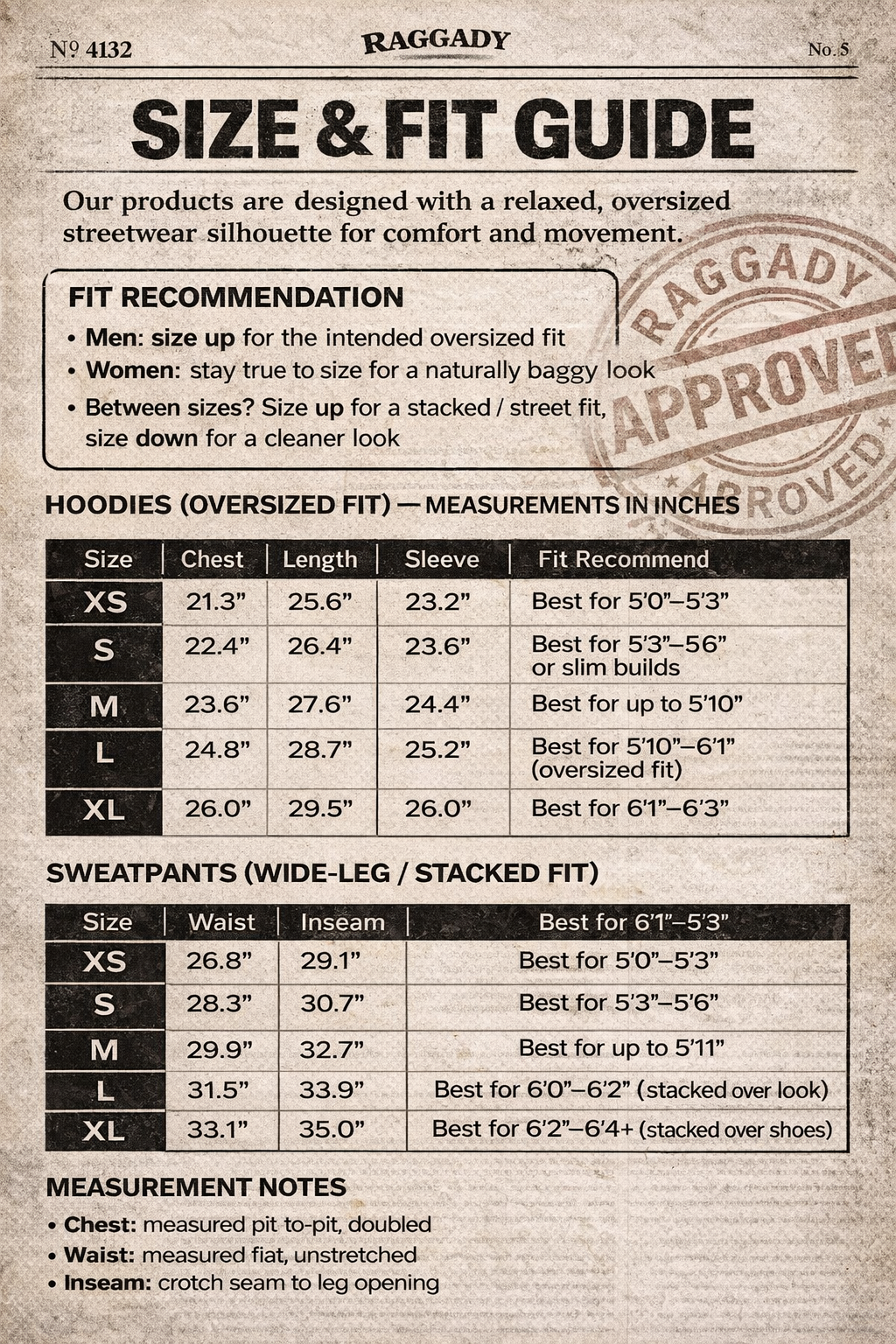• Intentional “imperfect” RAGGADY-style fit